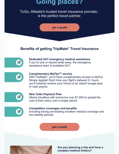 We’ve had the opportunity to build and launch award winning campaigns for brands like American Express, Forbes, AARP, Atlassian, Cancer Treatment of America, Moderna and many more. Click on any of the email thumbnails below to get a preview of just a small sampling of emails we’ve done for our clients. Please be in mind, for the exclusivity of some of our clients, we have removed their logos and some key imagery from the examples shown here.